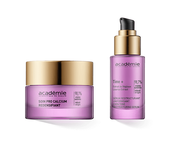 De belangrijkste producten uit de Académie Time+ lijn zijn het balancerende en herstellende Sérum Restructurant Uniformisant en de verstevigende Soin Pro-Calcium Redensifiant crème.