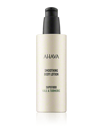 De Smoothing Body Lotion Kale & Turmeric uit de AHAVA Plants-lijn volgt een nieuwe formule die vrije radicalen bindt. De verwerkte ingrediënten van boerenkool en kurkuma voorkomen vroegtijdige huidveroudering. De bodylotion voorziet de lichaamshuid van voedingsstoffen en vocht en beschermt tegen schadelijke invloeden. De huid ziet er gerevitaliseerd, glad en soepel uit.