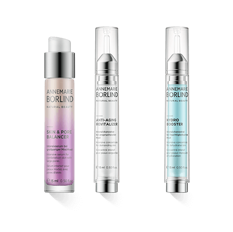 Iedereen met een huid die wordt gekenmerkt door grove poriën of ontstekingen zal geen afstand willen doen van de Annemarie Börlind Beauty Shots Skin & Pore Balancer. Deze bevat fytoplankton en het actieve ingrediënt verbascoside. Verbascoside is afkomstig uit de plantencellen van de sering en heeft in combinatie een ontstekingsremmende en talgregulerende werking. De huid wordt verhelderd, gematteerd en de poriën worden verfijnd. De zeer veeleisende huid en de huid die de eerste tekenen van veroudering vertoont, heeft de verstevigende, regenererende en vooral revitaliserende ingrediënten van Annemarie Börlind Beauty Shots Anti-Aging Revitalizer nodig. De gelaatstrekken ontspannen zich onder invloed van Szechuanpeper. Fijne lijntjes en rimpels verdwijnen of worden geminimaliseerd dankzij mastiek pistache-olie, die het jeugdgen van de huid stimuleert. De ingrediënten in Annemarie Börlind Beauty Shots Hydro Booster hebben een opvullende, verfrissende en hydraterende werking. Sheaboter, squalaan, koper PCA, malachietextract en actieve ingrediënten uit de zee stimuleren de huideigen hyaluronzuurproductie, waardoor de huid gladder wordt en langdurig wordt gehydrateerd.
