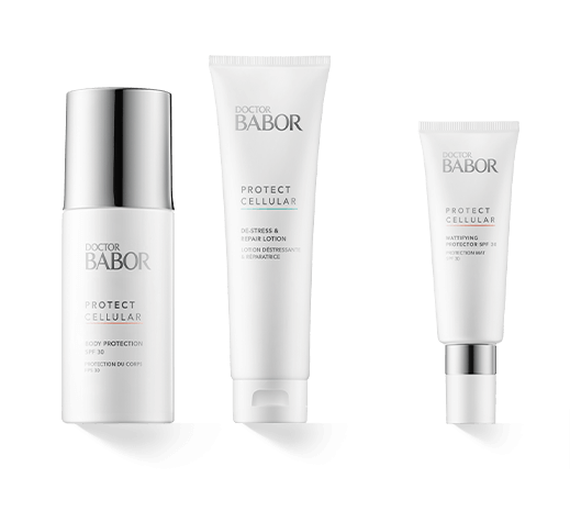 Protect Cellular werd in Duitsland ontwikkeld om UV-straling en blauw licht effectief tegen te gaan en door het milieu veroorzaakte huidveroudering te voorkomen. Het doel was om een precisiecosmetica te ontwikkelen op basis van wetenschappelijke bevindingen. Babor Doctor Babor Protect Cellular is een uitstekend ontworpen productlijn die precies aan deze eisen voldoet en is bedoeld om de huid all-round bescherming te bieden met een rijke verzorging.Vrouwen die moderne, intelligente verzorging willen op een wetenschappelijke basis zijn de focus van Babor. De Babor Doctor Babor Protect Cellular systeemverzorging is voor hen ontworpen. Afgestemd op het individuele huidtype heeft Babor Protect Cellular een allround effect en een nauwkeurige huidverzorging die met de tijd meegaat. Het past zich aan je routine aan en kan perfect worden gecombineerd met peelings en het gebruik van schoonheidsapparaten. Babor Protect Cellular heeft een geconcentreerde werking. De afzonderlijke producten bevatten geen onnodige toevoegingen. Dit betekent dat zelfs gevoelige vrouwen kunnen genieten van het holistische concept van verzorging en bescherming.