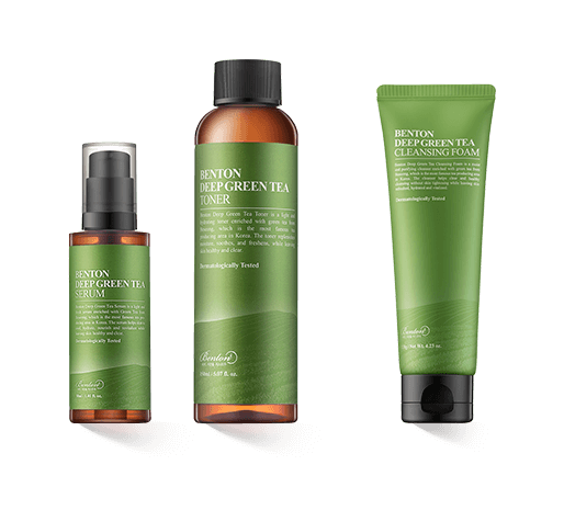 De verzorging begint met een grondige reiniging. De Benton Deep Green Tea Cleansing Foam is een reinigingsschuim met groene thee, tijgergras, zwarte wilgenbast en andere actieve ingrediënten. Deze hebben onder andere een antimicrobiële werking en helpen de beschermende barrière van de huid te versterken. De verspreiding van bacteriën wordt verminderd en de talgproductie kan worden gereguleerd om verstopte poriën en daarmee de voedingsbodem voor onzuiverheden te verminderen.