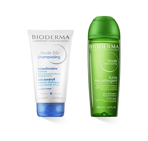 Er zijn twee versies van de shampoo voor haartypes die gevoelig zijn voor roos. De Nodé K Shampooing Keratoreducing Shampoo van Bioderma is voor droge roos en heeft een anti-jeuk effect.