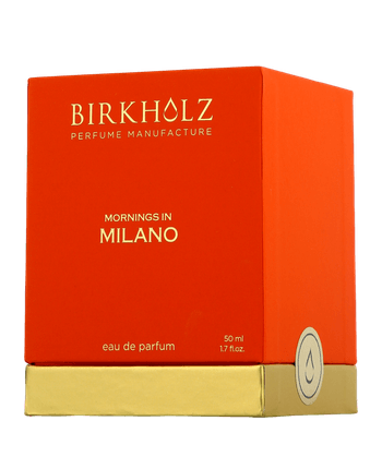 De eau de parfum spray Mornings in Milano van Birkholz Italian Collection straalt het sprankelende licht van Milaan uit op een zonnige ochtend: de topnoten van kokosnoot, witte perzik en vanille verkondigen energie, jasmijn, gardenia en frangipanibloesem zetten sensuele accenten en vanille, bedolven onder witte muskus en houtachtige noten, kondigt het zachte karakter van Lombardije aan. Milaan was de eerste halte van Philip Birkholz' reis naar Italië, die de Berlijnse geursommelier inspireerde tot het creëren van zijn buitengewone parfumcollectie. Het eau de parfum is verkrijgbaar in een sprankelende oranje glazen flacon met een decoratieve gouden dop.