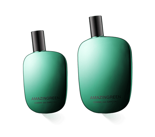 De fles Comme des Garçons Amazingreen is discreet en handig van vorm, zonder randen of afleidende versieringen, en heeft een eenvoudig en diepgaand ontwerp dat doet denken aan de schaduwen van de junglebodem.