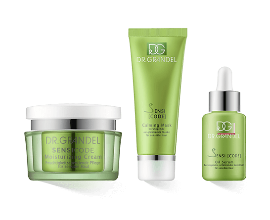 Het Dr. Grandel Sensicode assortiment omvat verschillende producten die alles omvatten van reiniging en dagelijkse verzorging tot intensieve hulp bij acute problemen en anti-aging crème. Afzonderlijk gebruikt, gecombineerd in een routine of naar behoefte, Sensicode biedt voor elk wat wils en kan heerlijk gevarieerd worden. De daaruit voortvloeiende vrijheid en de verschillende samenstellingen maken individueel maatwerk mogelijk. Bovendien zijn de producten niet alleen geschikt voor de gevoelige huid. Die is weliswaar gevoeliger voor irritatie, roodheid en een trekkerig gevoel, maar niet de enige die daar last van heeft. Stress, droge lucht, bepaalde spanningen en een onevenwichtig dieet kunnen ook leiden tot een verzwakte huidbarrière. In deze gevallen kan een extra portie zachte en langdurige verzorging helpen om een snelle verbetering teweeg te brengen.