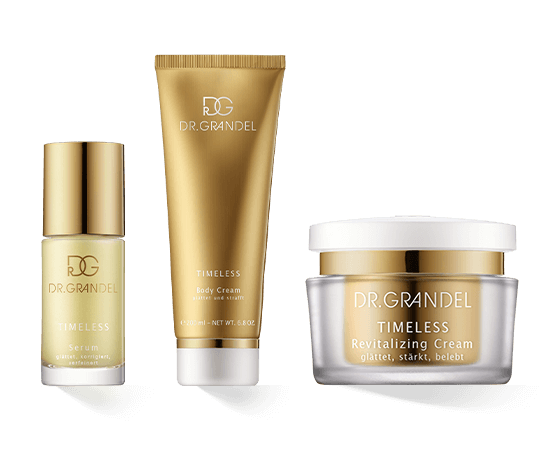 Een gladde, jeugdige huid zonder rimpels en lijntjes - wie wil dat nu niet? Om ervoor te zorgen dat de gezichtshuid zelfs op hoge leeftijd stevig en elastisch blijft, is uitgebalanceerde huidverzorging van hoge kwaliteit het allerbelangrijkste. De Dr. Grandel Timeless huidverzorgingslijn biedt een verscheidenheid aan producten die de eerste tekenen van veroudering gericht en effectief bestrijden.