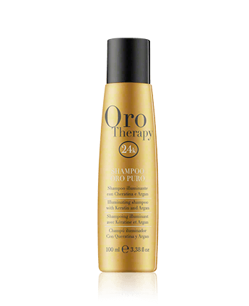 Fanola Oro Therapy 24K Shampoo Oro Puro is een shampoo voor alle haartypes die is ontwikkeld om het haar niet te verzwaren. Het bevat micro-actieve gouddeeltjes en argan- en tijgernootolie. Het is ontworpen om glans en zijdezachtheid aan het haar te geven zonder het te verzwaren. Een geïntegreerd UV-filter beschermt tegen vervaging en schade door de zon in het dagelijks leven.