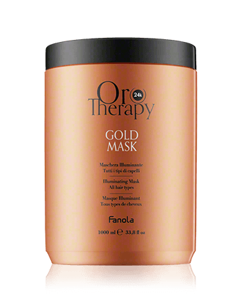 Haar dat geplaagd wordt door kroes en gespleten punten krijgt structuur en substantie met het Gold Mask uit de Fanola Oro Therapy-lijn. Na het wassen in vochtig haar masseren, ongeveer vijf minuten laten inwerken en uitspoelen. Het masker maakt het haar gevoed en gezond en geeft het weerstand en een verleidelijke glans. Het haar wordt ontward en krijgt zijn natuurlijke kracht terug.