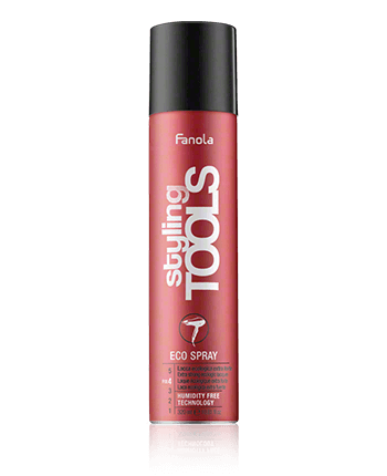 De Fanola Styling Tools Eco Spray is een haarlak met een sterke hold en een korte droogtijd. Harsen van plantaardige oorsprong zijn ontworpen om meer elasticiteit en flexibele hold voor verschillende kapsels te ondersteunen. Tegelijkertijd wordt het haar beter beschermd tegen mechanische wrijving, hitte en pluis. De spray kan indien gewenst gemakkelijk weer uitgekamd worden.