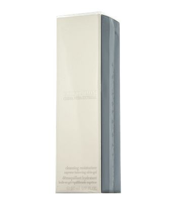 De Giorgio Armani Crema Nera Extrema Cleansing Moisturiser is een luxe olie-in-gel cleanser die zelfs hardnekkige make-up en onzuiverheden op milde wijze verwijdert. Bij contact met water verandert het product in een fijne emulsie die de huid verheldert en in balans brengt. Ruwe zones worden gladgestreken, de huid ziet er gladder en egaler uit en is optimaal voorbereid op de volgende huidverzorgingsbehandeling. Een reinigingsstap die doeltreffendheid combineert met kalmerende verzorging. Voor een schoon, fris en luxueus huidgevoel.