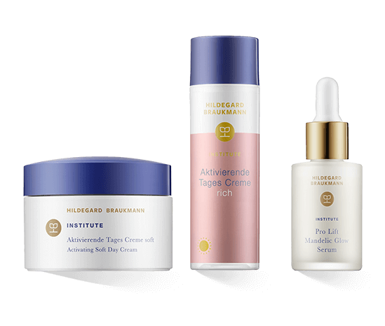 Het Rich & Pure Cream Mask is een echte luxe verpakking die een gladmakend effect heeft op de zeer veeleisende huid, net als de Hildegard Braukmann Institute Pro Lift Day Cream SPF 10, die de voordelen van een moisturiser combineert met zonbescherming, primer, antipigmentconcentraten en rimpelvuller. De Hydro Active Freshness Gel heeft een verfrissend effect. De Hildegard Braukmann Institute Alpha Immune Fluid biedt een lichte verzorging voor de huid die gevoelig is voor onzuiverheden. De Activerende Dagcrème Rijk voor de veeleisende huid en de Hildegard Braukmann Institute Activerende Dagcrème Zacht maken de dagverzorging compleet. Innovatieve high-end dagverzorging is de Pro Lift Dagcrème Puur. Deze verstevigt, hydrateert en gaat pigmentvlekken en rimpels tegen.