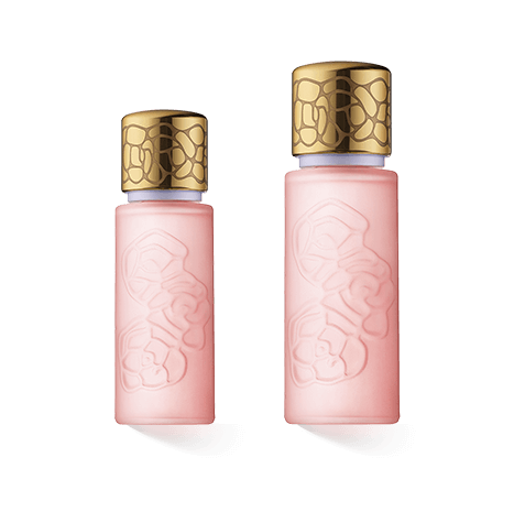 De eenvoudige maar elegante cilindervormige flacon is gemaakt van hoogwaardig mat glas en glanst in een zachte perzikkleur. Een exclusief reliëf van gestileerde, delicate bloesems loopt over de flacon en weerspiegelt visueel de overweldigende bloemenpracht van het parfum. Deze gestileerde bloesems zijn ook terug te vinden in de cilindrische dop, die glanst in een stralende goudtint en het elegante ontwerp vakkundig versterkt.