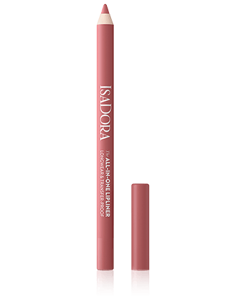 IsaDora All-in-One Lipliner 04 Bare Pink is zachtroze met een frisse ondertoon, ideaal voor subtiele alledaagse looks of als delicate basis voor rozige lipkleuren. De niet vlekkende, veegbestendige formule blijft goed zitten, terwijl jojoba-olie de lippen voedt en de textuur soepel houdt. Voor een natuurlijk mooie finish die elke lipvorm flatteert, schoon, veganistisch en geurvrij.