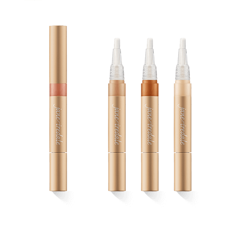 Een kleine hoeveelheid concealer uit het Jane Iredale Active Light assortiment is genoeg om het volledige effect te bereiken. Om overdosering te voorkomen, zijn de concealers gevuld met tuitjes die een precieze dosering mogelijk maken. De tuit is gecoat in een luxe matte gouden kleur. Aan de onderkant zit een dop die de kostbare concealercrème met een draai loslaat. Aan de bovenkant van de tuit zit een kwastje dat op de juiste maat is afgesteld. De concealer komt uit het midden van het penseel voor nauwkeurig aanbrengen. Een eveneens mat gouden beschermdop bedekt het penseel. De naam Jane Iredale staat in witte letters in het midden van de tuit.