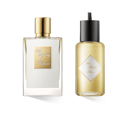 De witgelakte flacon is een kunstobject op zich: het motief van het schild van Achilles, dat verleiding en bescherming symboliseert, siert het oppervlak in diep reliëf. Een spiegelgepolijst, goudkleurig metalen plaatje met de naam van het parfum, dat met de hand is gegraveerd, maakt het luxueuze ontwerp compleet. De hervulbare flacon benadrukt KILIAN's filosofie van duurzaamheid en maakt van Her Majesty een kostbare metgezel voor het leven.
