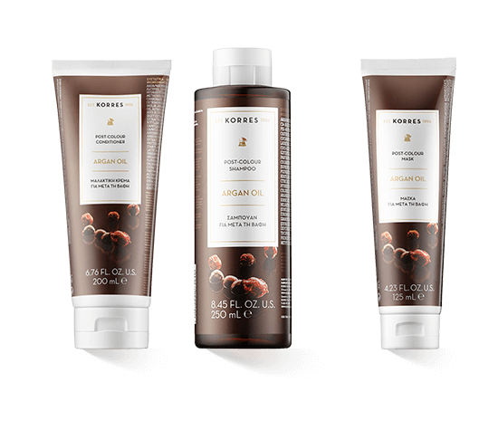 De Post-Colour Shampoo opent het assortiment Argan Oil-producten van Korres en is, net als alle producten in het assortiment, van nature verrijkt met een bijzonder hoge hoeveelheid arganolie. Het bevat ook jojoba-olie, zonnebloemolie en kokosolie. Bioplipiden en polysacchariden en vitamine E vullen de oliën aan en zorgen ervoor dat de post-kleurshampoo het haar mild reinigt en ook kleurresten grondig van de hoofdhuid verwijdert zonder deze aan te tasten. De shampoo verzwaart het haar niet en brengt de pH-waarde van de hoofdhuid en het haar weer in balans. De Korres Argan Oil Post-Colour Conditioner is de perfecte match. Het bevat dezelfde voedende en hydraterende actieve ingrediënten, verlengt de glans van de kleur en maakt het haar makkelijker doorkambaar. Het haar wordt heerlijk glad en glanzend.