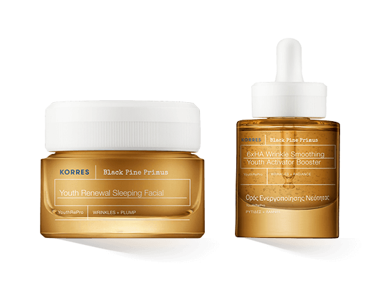 De Korres Black Pine Primus-serie is een nieuw gezichtsverzorgingsproduct dat de huid zichtbaar verjongt met de kracht van de knop van de zwarte den. Net zoals de knop alle levenskrachten in zich verenigt, geeft de gezichtsverzorging de huid nieuwe kracht om zichzelf te regenereren en glad te strijken. De huid wordt zichtbaar steviger en gladder. De voedende en revitaliserende formule laat de huid er voller uitzien, lijntjes en rimpels zijn aanzienlijk verminderd, de teint is gerevitaliseerd en heeft een jeugdige gloed. Deze verbeteringen zijn zichtbaar na ongeveer 14 dagen gebruik. De huidverzorgingslijn is geschikt voor de huid tussen 30 en 50 jaar.