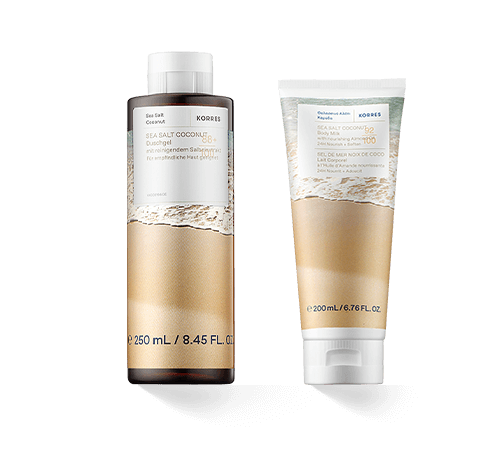 De Korres Sea Salt Coconut verzorgingslijn combineert effectieve hydraterende verzorging met een warme, tropische geur. De Body Milk en Shower Gel vullen elkaar perfect aan in de dagelijkse lichaamsverzorging. Ze verzachten en hydrateren de huid en zorgen voor een sensuele verzorgingservaring. Dit creëert momenten die aanvoelen als een korte vakantie voor lichaam en zintuigen.