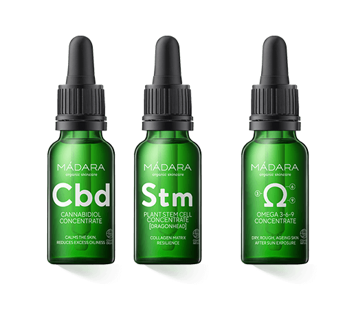 Het MÁDARA Custom Actives assortiment bestaat uit elf serums die zijn afgestemd op individuele huidbehoeften.