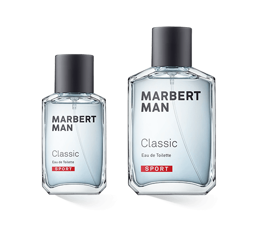 De Marbert Man Classic Sport geurverzorgingslijn die voor Marbert is ontwikkeld door de in Wertheim gevestigde cosmeticaspecialist Straub heeft een klassiek, sportief design. De sportieve geurverzorgingslijn voor mannen is gebaseerd op de hoofdlijn van Marbert, de Man Classic verzorging, en wordt gepresenteerd in een klassieke eau de cologne-flacon met een licht afgeschuinde top. De nieuwe, sprankelende, lichtblauwe essentie van de elegante geur schijnt er doorheen. De dop van de flacon is klassiek zwart, net als de spraykop. Naast het Marbert-logo benadrukt een rode banderol met de Sport-print de nieuwe editie.