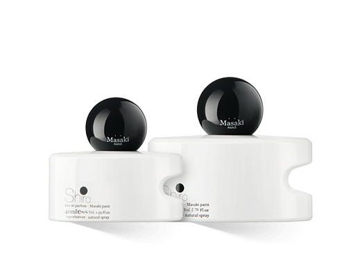 De flacon van Masakï Matsushïma Shiro schittert in puur wit. Alleen de dop en de letters zijn zwart. Dit zorgt voor een sterk contrast dat de helderheid van de flacon benadrukt. De bloemen van het parfum zijn net zo helder. De vorm van de flacon doet denken aan de minimalistische maar extravagante mode van Masakï Matsushïma. Een halfronde inkeping aan de rechterkant van de brede flacon trekt het oog naar de dop. Deze is rond, net als de grote stip op de I van Shiro. Hierdoor wordt het oog vakkundig naar deze driehoek getrokken. Het resultaat is een rust en regelmaat die verrassend is door de asymmetrische vorm.