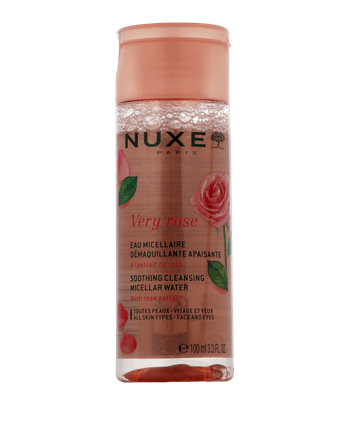 De Nuxe Very Rose Eau Micellaire Démaquillante Apaisante verwijdert make-up bijzonder mild van gezicht en ogen. De frisse micellaire formule met rozenextract bestaat voor 99 procent uit ingrediënten van natuurlijke oorsprong en is geschikt voor alle huidtypes. Het reinigt effectief, hydrateert onmiddellijk en kalmeert de huid. De niet-plakkerige textuur en delicate rozengeur laten de huid aangenaam zacht aanvoelen en bereiden de huid optimaal voor op verdere verzorging.
