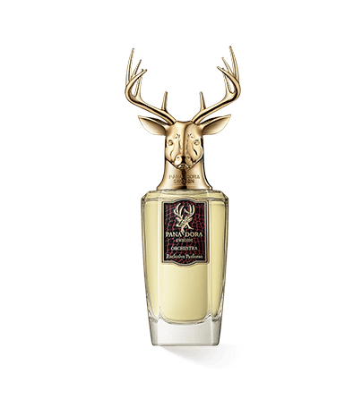 De verfijnde Orchestra-flacon belichaamt klassieke elegantie en modern design. De stevige glazen flacon met de gouden dop in de vorm van een hertenkop symboliseert kwaliteit. Het weerspiegelt perfect het karakter van de geur: exclusief, uniek en tijdloos.
