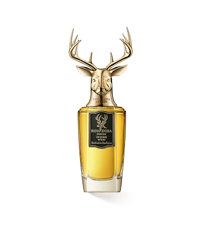 De fles met hertenkop is kenmerkend voor het Zweedse nichemerk. De bijzondere dop past perfect bij de extravagante bosgeur Pana Dora Sweden Swedish Wood. De hertenkop zit op een gouden sproeikop die de transparante glazen fles afsluit. De fles loopt taps toe naar boven, waardoor hij er nobel en krachtig uitziet. Op de voorkant zit een plaatje met de merknaam, het logo van de hertenkop en de naam van het parfum. Het is ook gemaakt van metaal, de achtergrond is zwart gemaakt en de reliëfelementen glinsteren in een koperkleur. De kleur van de vloeistof glinstert door het glas in een goudbruine tint en doet denken aan het houtachtige karakter van de geur.