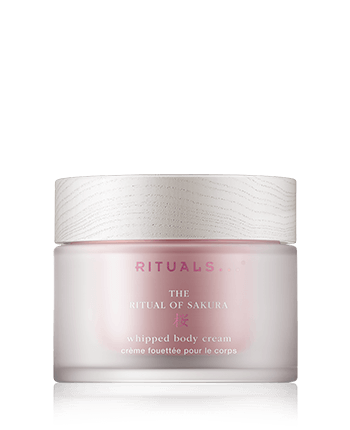 Rituals The Ritual of Sakura Whipped Body Cream is het lichaamsverzorgingsproduct in het assortiment. De zachte geur van kersenbloesem en rijstmelk wordt voortgezet en gecombineerd met intensieve huidverzorging. De textuur is gecreëerd met een speciale techniek waardoor de crème aangenaam makkelijk uitsmeert. De huid krijgt vitamine E en antioxidanten en wordt langdurig gehydrateerd.