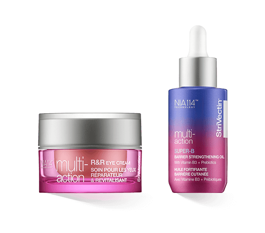 Centraal in alle StriVectin formules staat opnieuw NIA-114, een gepatenteerd actief complex dat exclusief wordt gebruikt in de producten van het merk. Het is een geoptimaliseerde vorm van niacine en vitamine B3. Het complex helpt de huidbarrière te versterken. Tegelijkertijd dient het als booster voor andere huidverzorgingsingrediënten en helpt het hun werking te versterken.