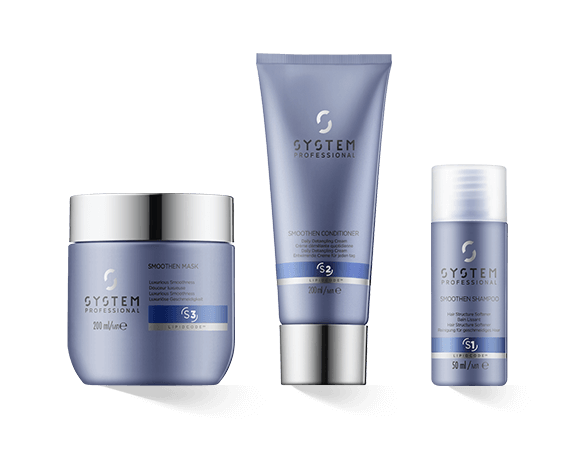 System Professional LipidCode Smoothen Shampoo H1 wordt gebruikt om te reinigen. Het helpt al om het haar gladder te maken en is daarom een ideale voorbereiding voor de daaropvolgende styling. Vervolgens kan System Professional LipidCode Smoothen Conditioner S2 worden gebruikt. Deze conditioner ondersteunt het verder ontwarren en heeft een antikroeseffect. Het wordt in handdoekdroog haar gemasseerd en moet ruim 30 seconden inwerken. Daarna zachtjes laten schuimen en goed uitspoelen. Het System Professional LipidCode Smoothen Mask S3 kan gebruikt worden voor een intensieve diepe conditioning. Dit haarmasker is bedoeld als wekelijkse behandeling. Het FormaLiss actieve complex revitaliseert het haar. Het masker wordt op de lengten en punten van gewassen haar geborsteld. Laat het masker ongeveer vijf minuten inwerken. Een gecombineerde massage creëert een ontspannend verzorgingsritueel voor het haar. De productresten worden vervolgens grondig uitgespoeld.
