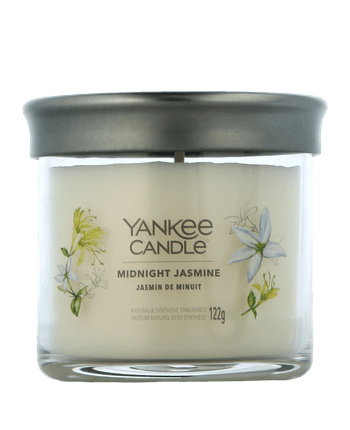 Yankee Candle Signature Tumbler Midnight Jasmine verleidt met een elegant boeket van delicate jasmijnbloesem, zoete kamperfoelie, neroli en mandarijnblaadjes. De sensuele geur ontvouwt zich als een zwoele nacht vol bloemengeuren - romantisch, kalmerend en vrouwelijk. De twee lonten en de hoogwaardige sojawasmix zorgen voor een langdurige, gelijkmatige geurbeleving. Ingelijst in een stijlvol glazen design is deze beker een echte blikvanger. Midnight Jasmine - een geur voor rustige momenten en zachte dromen.