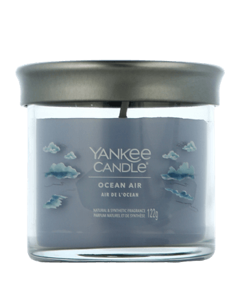 De Yankee Candle Signature Tumbler Ocean Air brengt je direct naar de zee met een frisse zeebries - pittige citrusnoten ontmoeten zilte lucht en aquatische nuances voor een verkwikkende geurbeleving. De twee lonten en de hoogwaardige sojawasmix zorgen voor een langdurig, gelijkmatig geurgenot. Het elegante glazen ontwerp maakt het een stijlvol hoogtepunt in elke kamer. Ocean Air - luchtig, helder en verfrissend als een wandeling langs de oceaan.